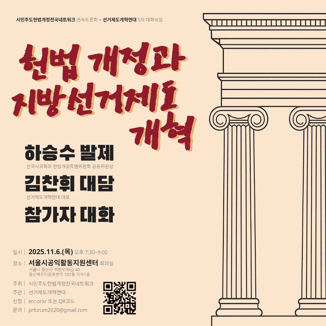 ✔️ (초대) 헌법 개정과 지방선거제도 개혁 ─ 11/6(목) 오후 7:30 |